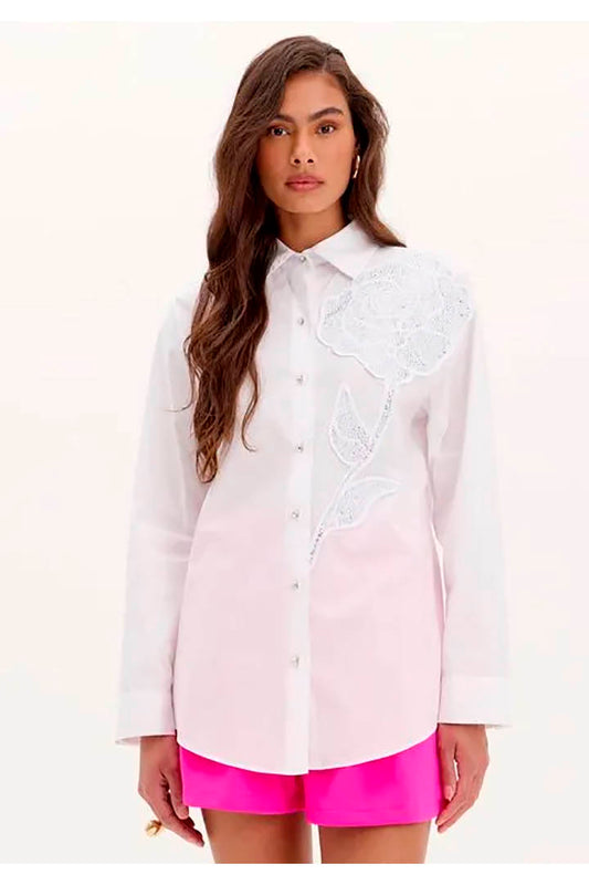 CAMISA COM APLICAÇÕES AMARANTE DO BRASIL