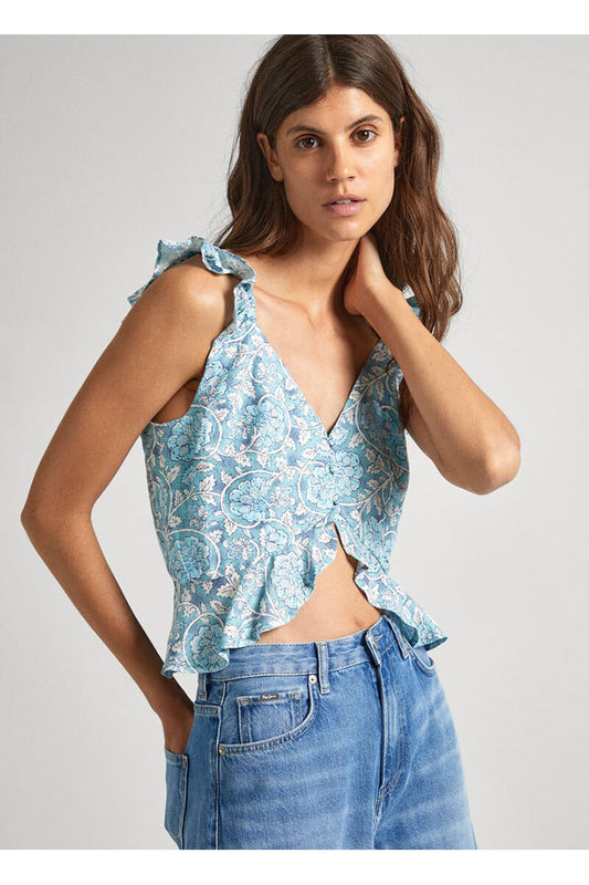 CAMISA FLUID LINEN SLEEVELESS TOP WITH BUTTONED PLACKET AT FRONT PEPE JEANS