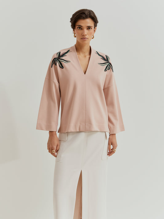 CAMISOLA DECOTE EM V COM BORDADO LION OF PORCHES
