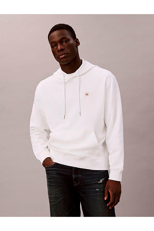 SHIRT LS EU 350TERRY BADGE HOODIE BRIGHT WHITE CALVIN KLEIN