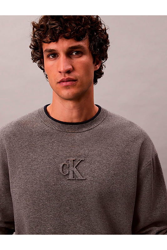 LS SHIRT EMBOSSED LOGO CREWNK SWEATER MED. GRAY HTR CALVIN KLEIN
