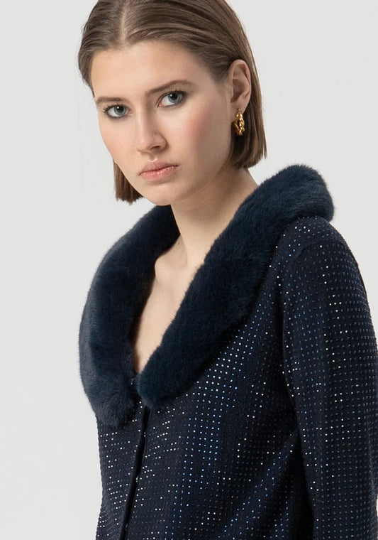 KNITTED CARDIGAN COAT WITH FAKE FUR FRACOMINA