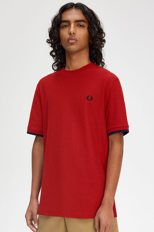 BURTN RED/NAVY FRED PERRY T-SHIRT