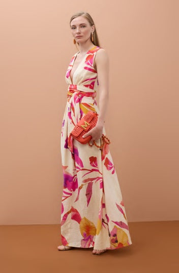 VESTIDO ESCOTE PICO CINTURON AJUSTABLE PRINT FLORAL LOLA CASADEMUNT BY MAITE