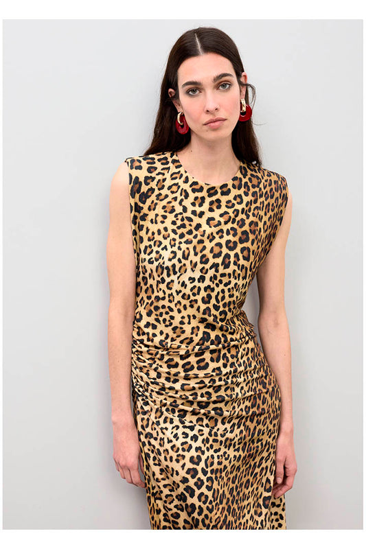 VESTIDO FITTED MIDI DRESS WITH DRAPED ANIMAL PRINT LOLA CASADEMUNT