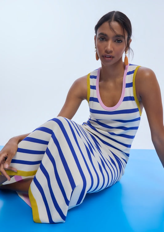 VESTIDO TRICOLOR STRIPED KNIT DRESS WITH CONTRAST RIBBING LOLA CASADEMUNT