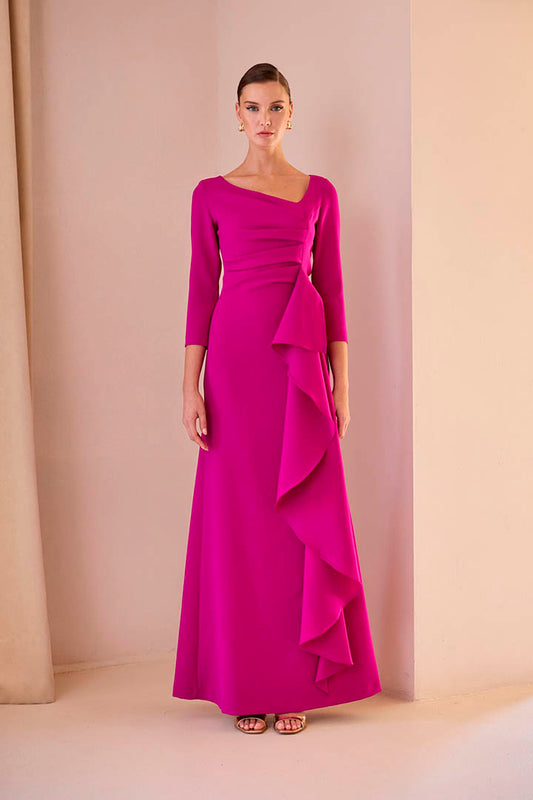 VESTIDO PLIEGUES VOLANTE LARGO CARLA RUIZ