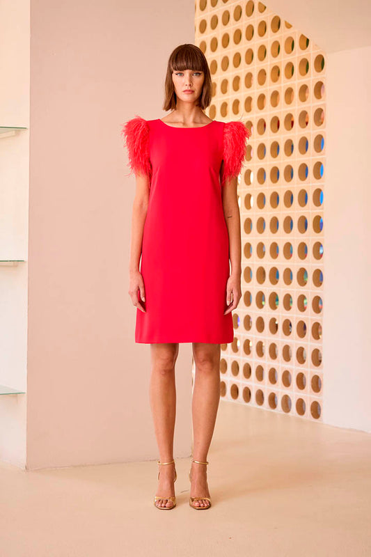 VESTIDO RECTO MANGAS PLUMA CARLA RUIZ