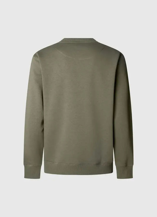 Camisa Macbeth con logo pequeño, lisa, cuello redondo, color verde militar, de Pepe Jeans