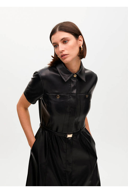 VESTIDO EFECTO PIEL EVASE CINTURÓN LOLA CASADEMUNT