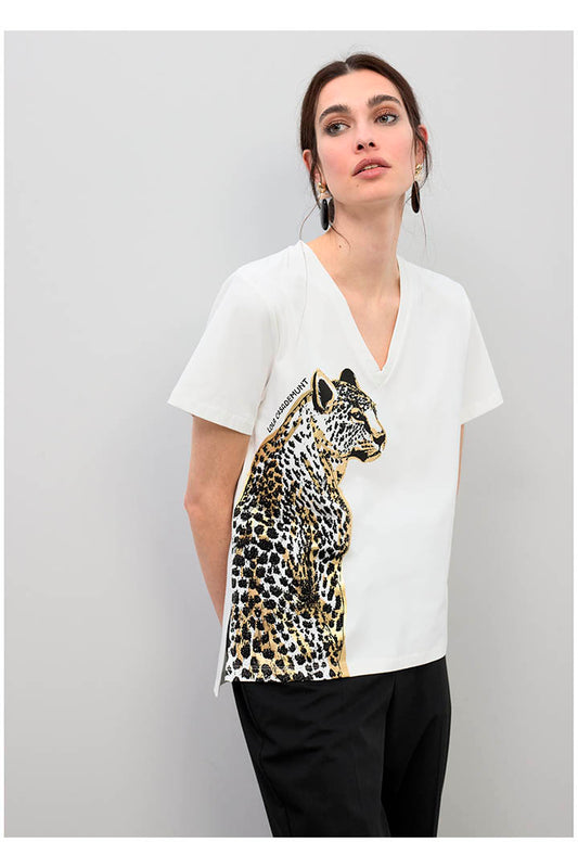 T-SHIRT V-NECK ANIMAL PRINT WITH BEADS LOLA CASADEMUNT