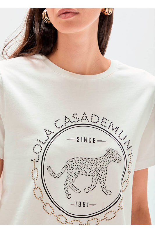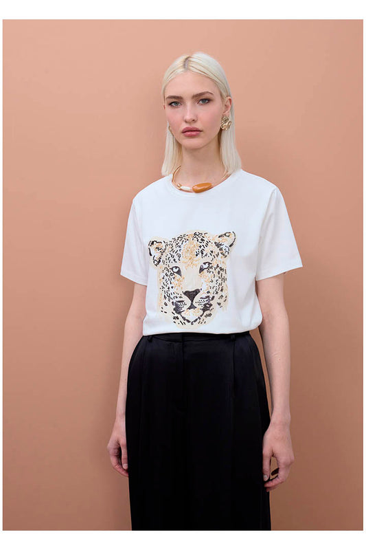 T-SHIRT BEADED LEOPARD FACE LOLA CASADEMUNT BY MAITE
