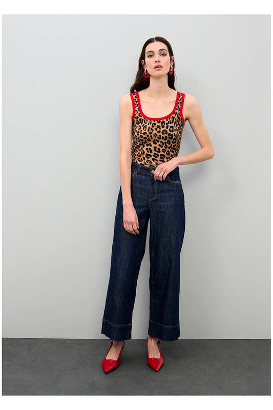 TOP WITH ANIMAL PRINT RIB CONTRAST LOLA CASADEMUNT